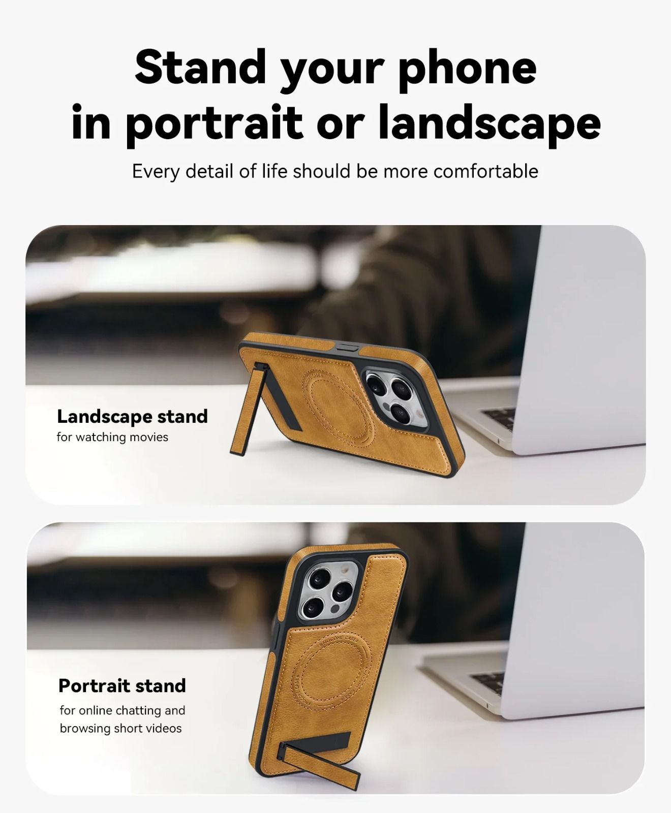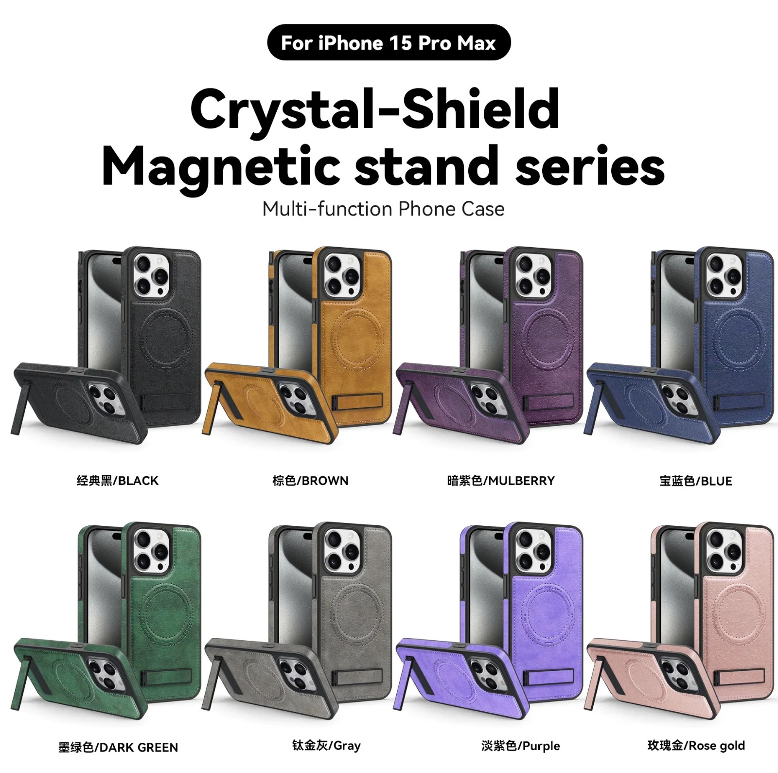 MOCOME Crystal Shield Shockproof Magnetic Stand Multifunction Luxury Leather + Rubber TPU Phone Casing for iPhone