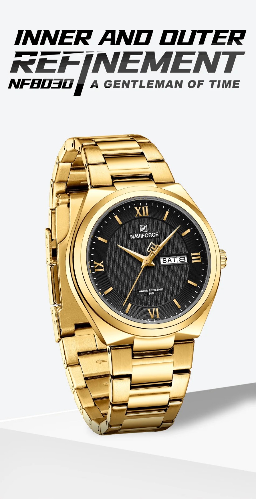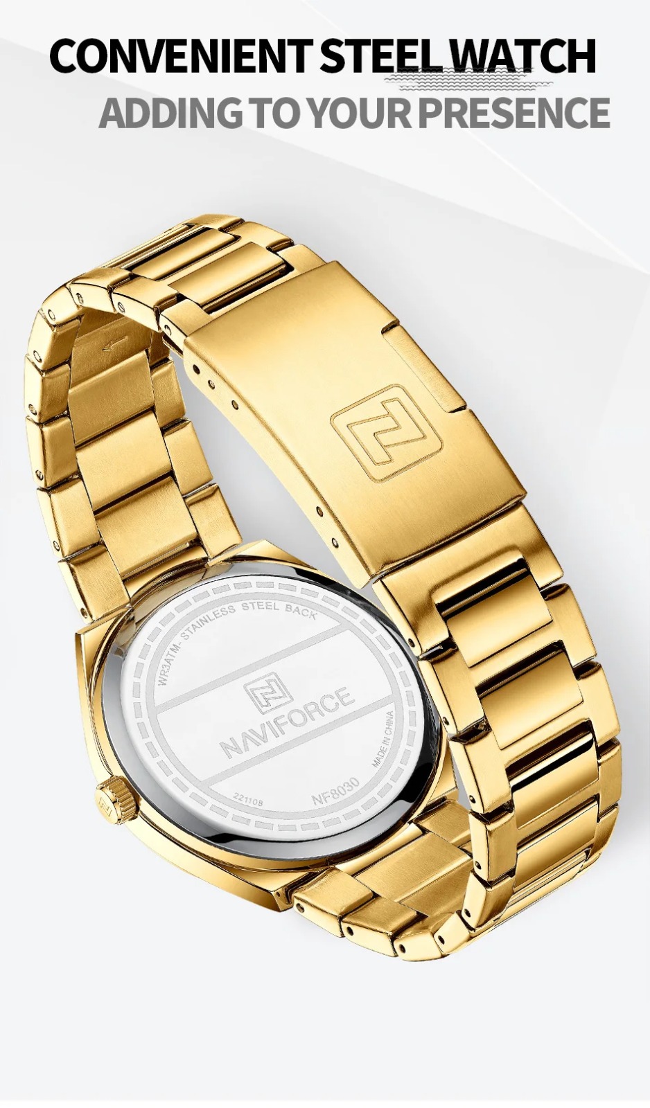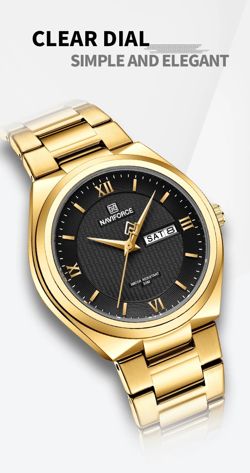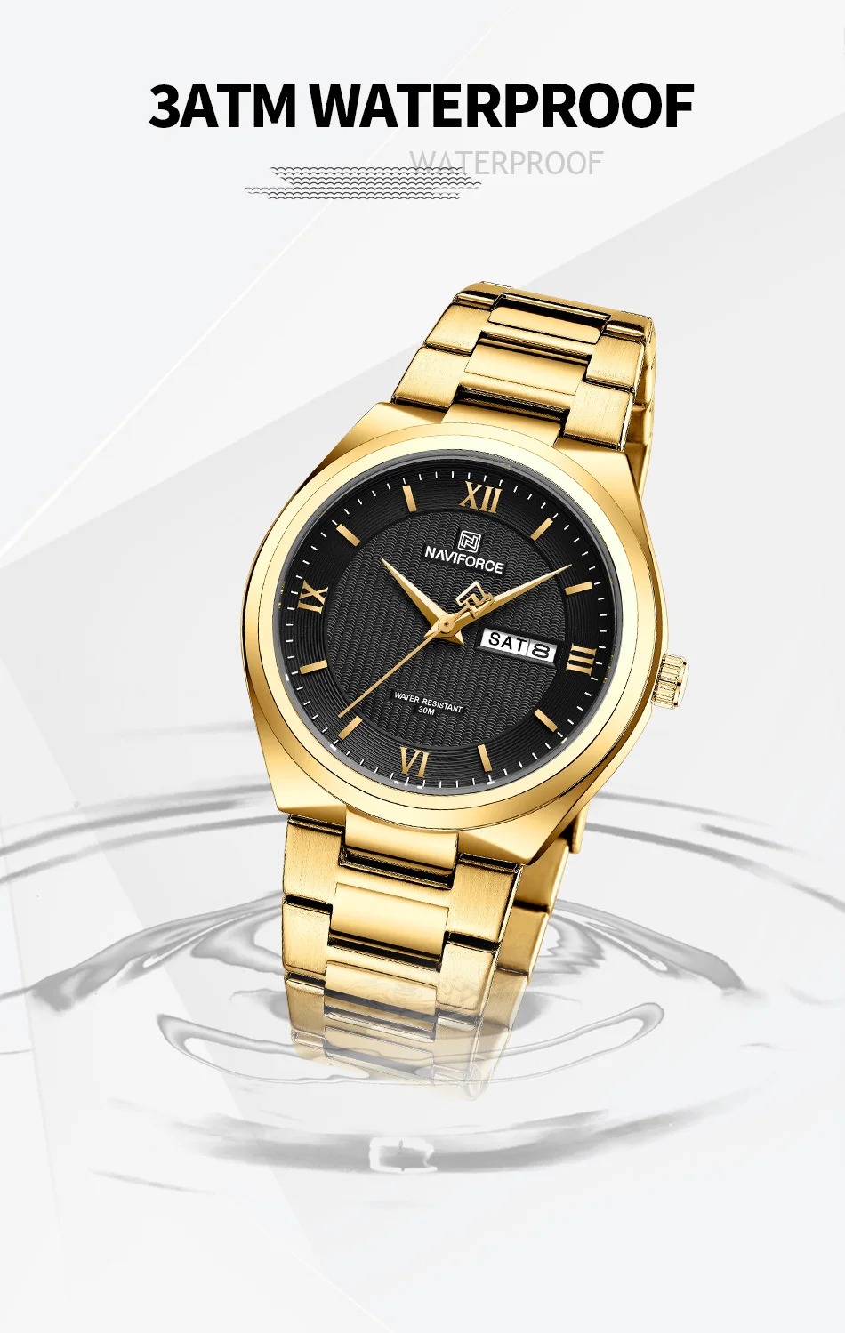 NAVIFORCE Luxury Premium Stainless Steel Golden Strap Quartz Unisex Watches & Waterproof Date Wristwatch