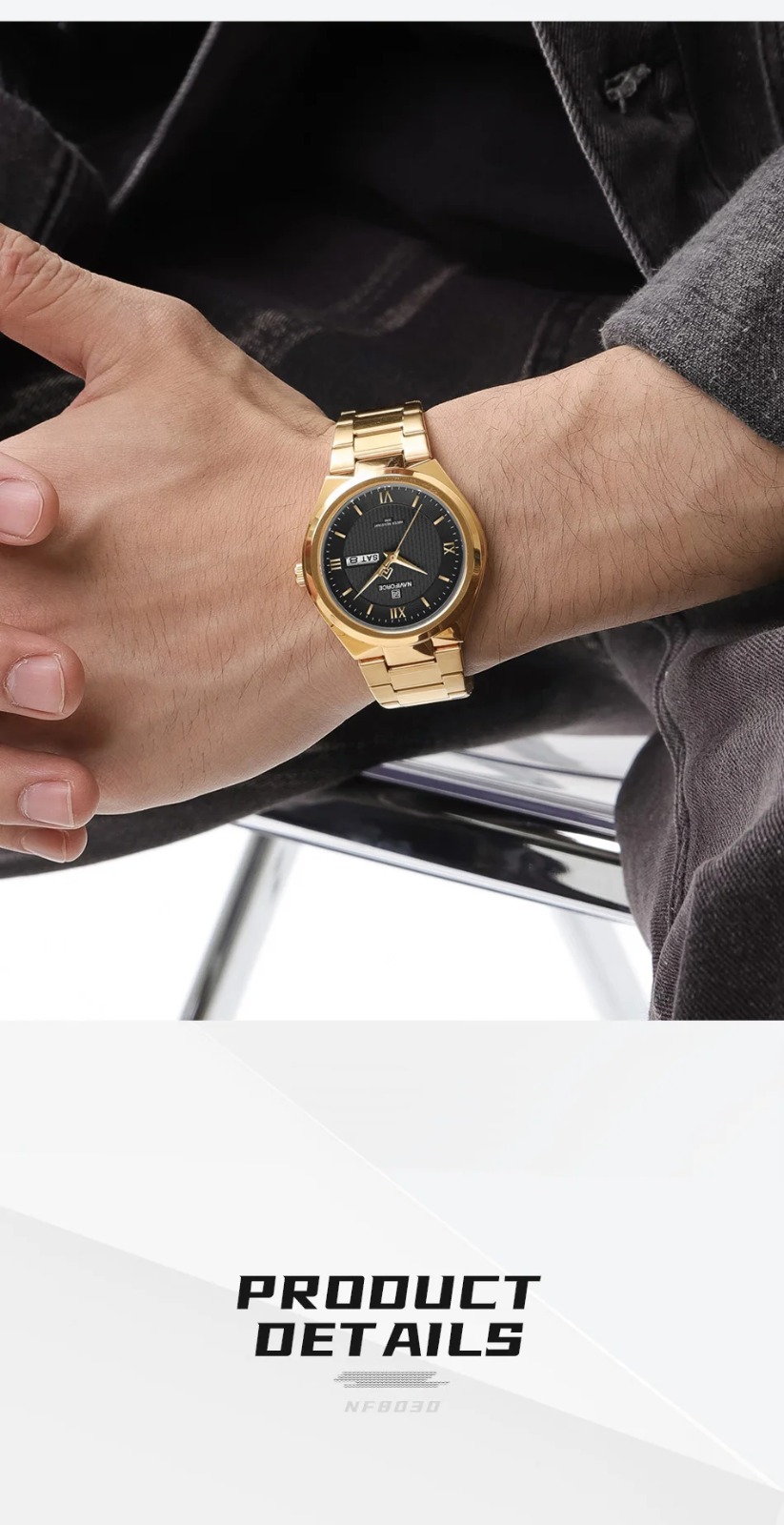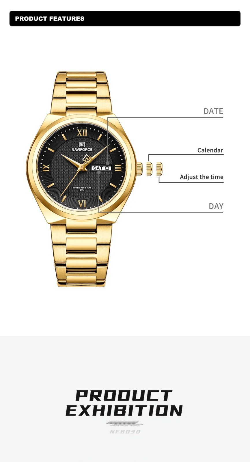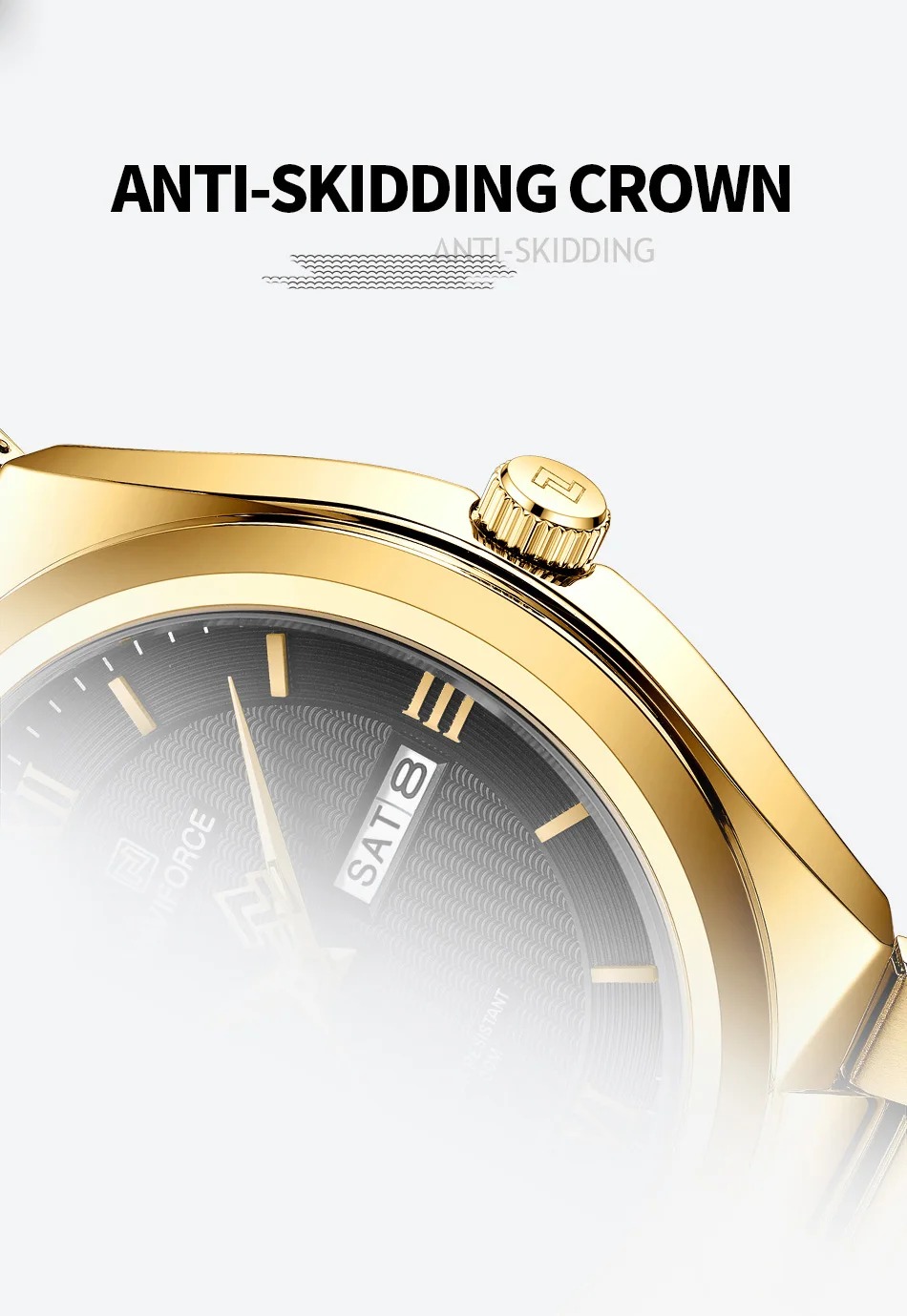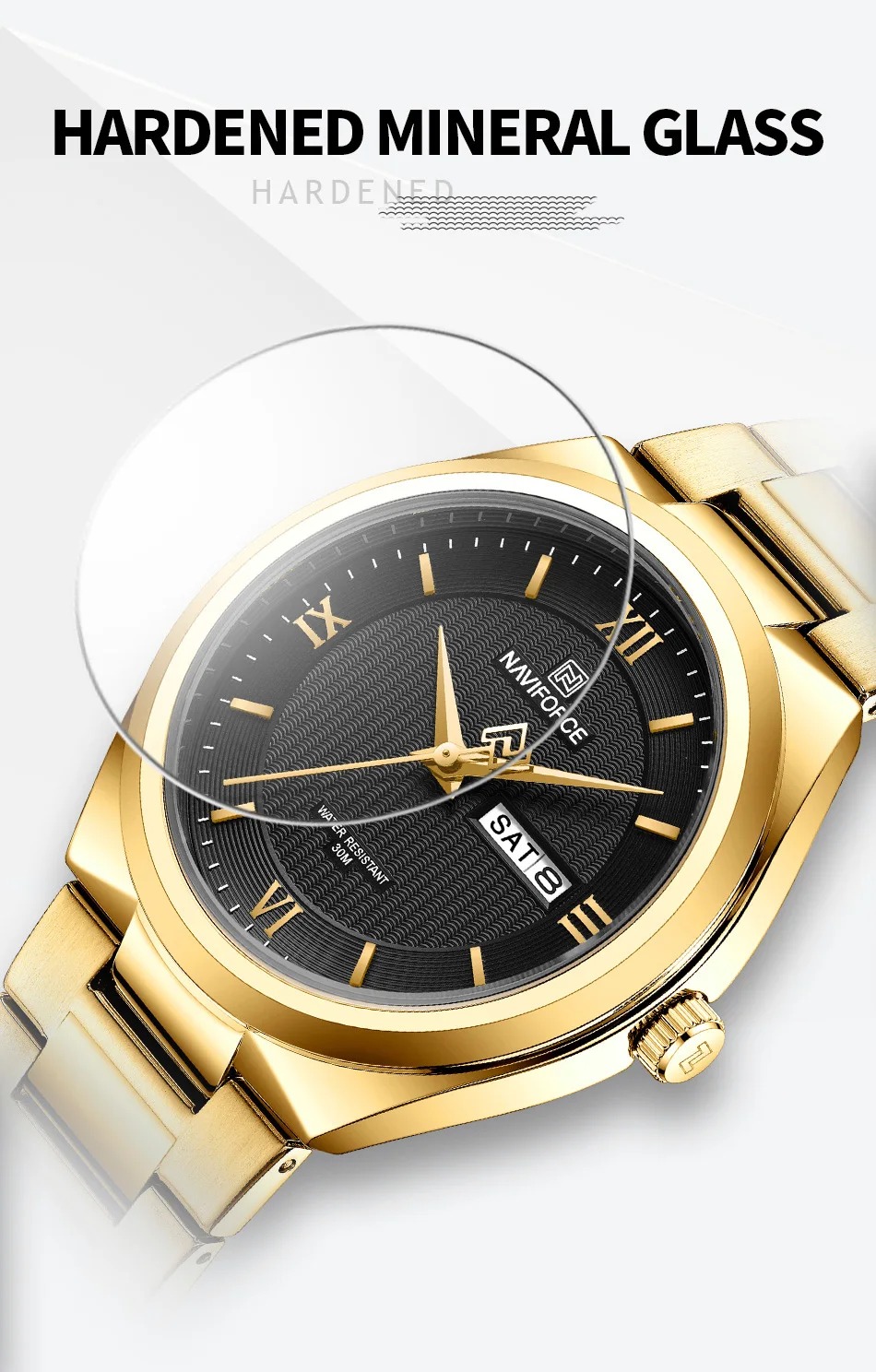 NAVIFORCE Luxury Premium Stainless Steel Golden Strap Quartz Unisex Watches & Waterproof Date Wristwatch